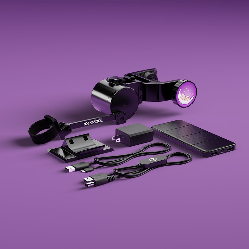 Soothe your baby with the RocknStroll Mobile Kit and the RocknStroll At-Home Kit, and you’re ready for any situation.